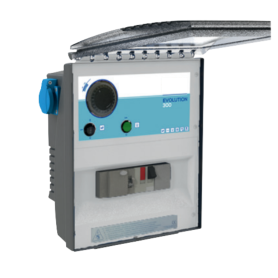 Coffret de filtration CCEI Evolution, pré-câblé avec disjoncteur 4/6A, alimentation projecteurs 300VA, sorties pour pompe et PAC. Réf. fabricant PF3D0427.