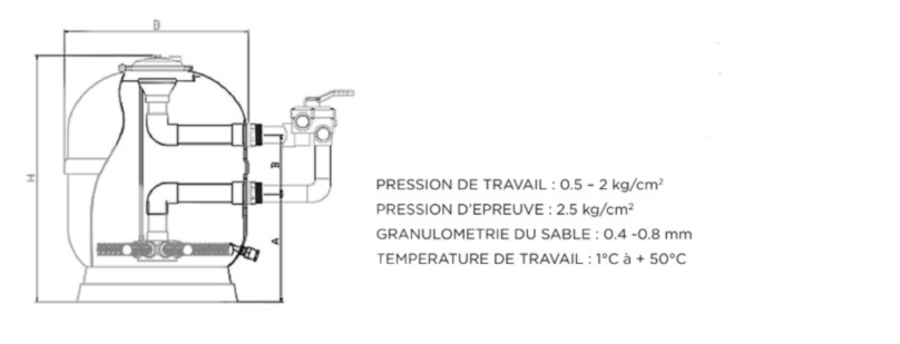 Livré avec manomètre, vanne latérale 6 voies et connexion filtre.